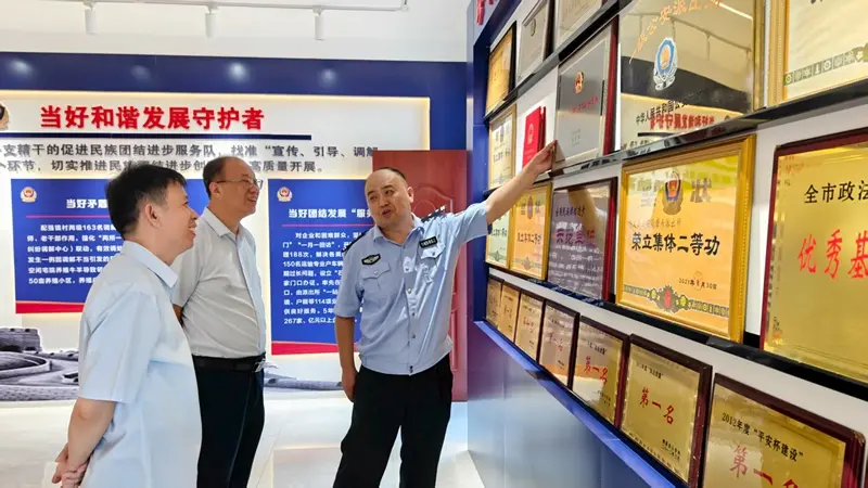 慰問組一行來(lái)到磨頭派出所,在民警的引導(dǎo)下,首先參觀了派出所文化長(zhǎng)廊與榮譽(yù)展廳,詳細(xì)了解了磨頭派出所歷史沿革與取得榮譽(yù)。